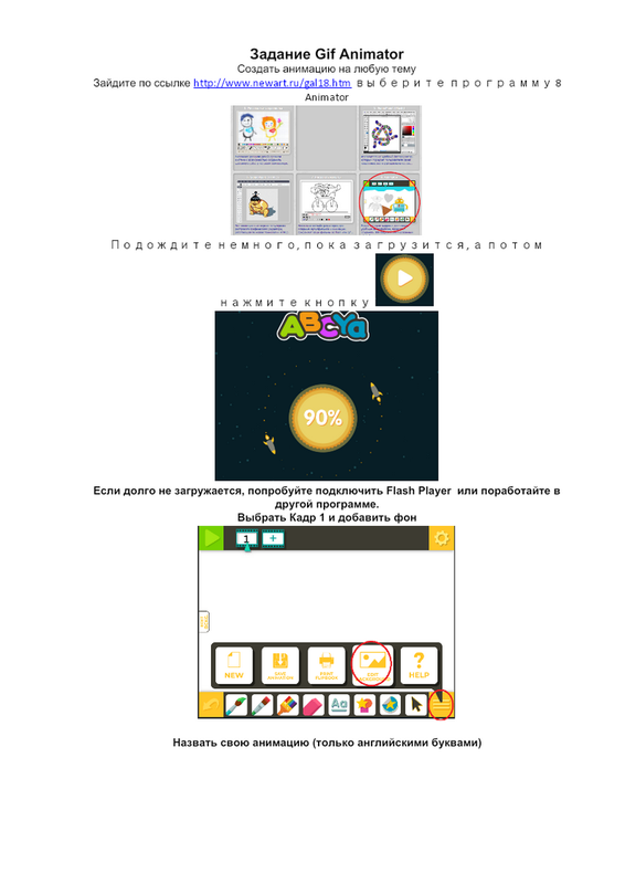 Задание Gif Animator Создать анимацию на любую тему Зайдите по ссылке http://www.newart.ru/gal18.htm выберите программу 8 Animator Подождите немного, пока загрузится, а потом нажмите кнопку Если долго не загружается, попробуйте подключить Flash Player или поработайте в другой программе. В...